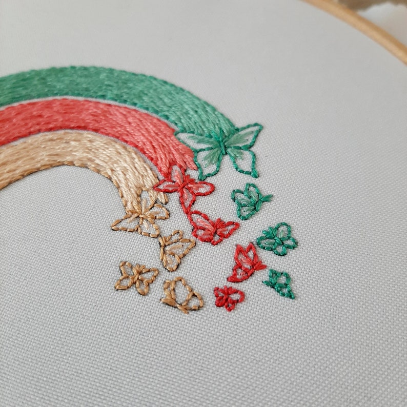 This adorable rainbow embroidery pattern is perfect for beginners.